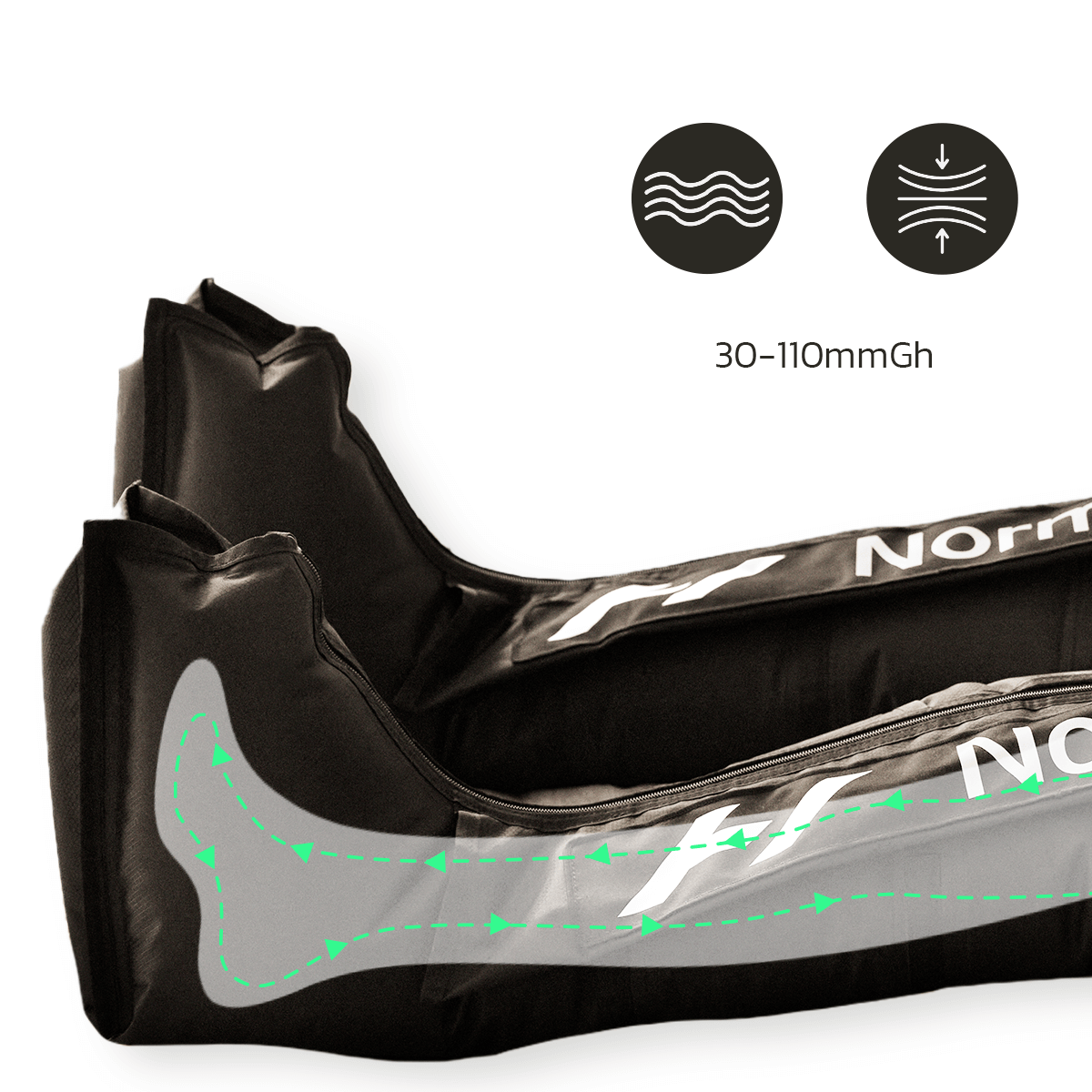 Wyjątkowa technologia pulsacyjnej kompresji imituje naturalne procesy krążenia, dostarczając mięśniom niezbędne wsparcie i zapewniając natychmiastową ulgę po intensywnym wysiłku.