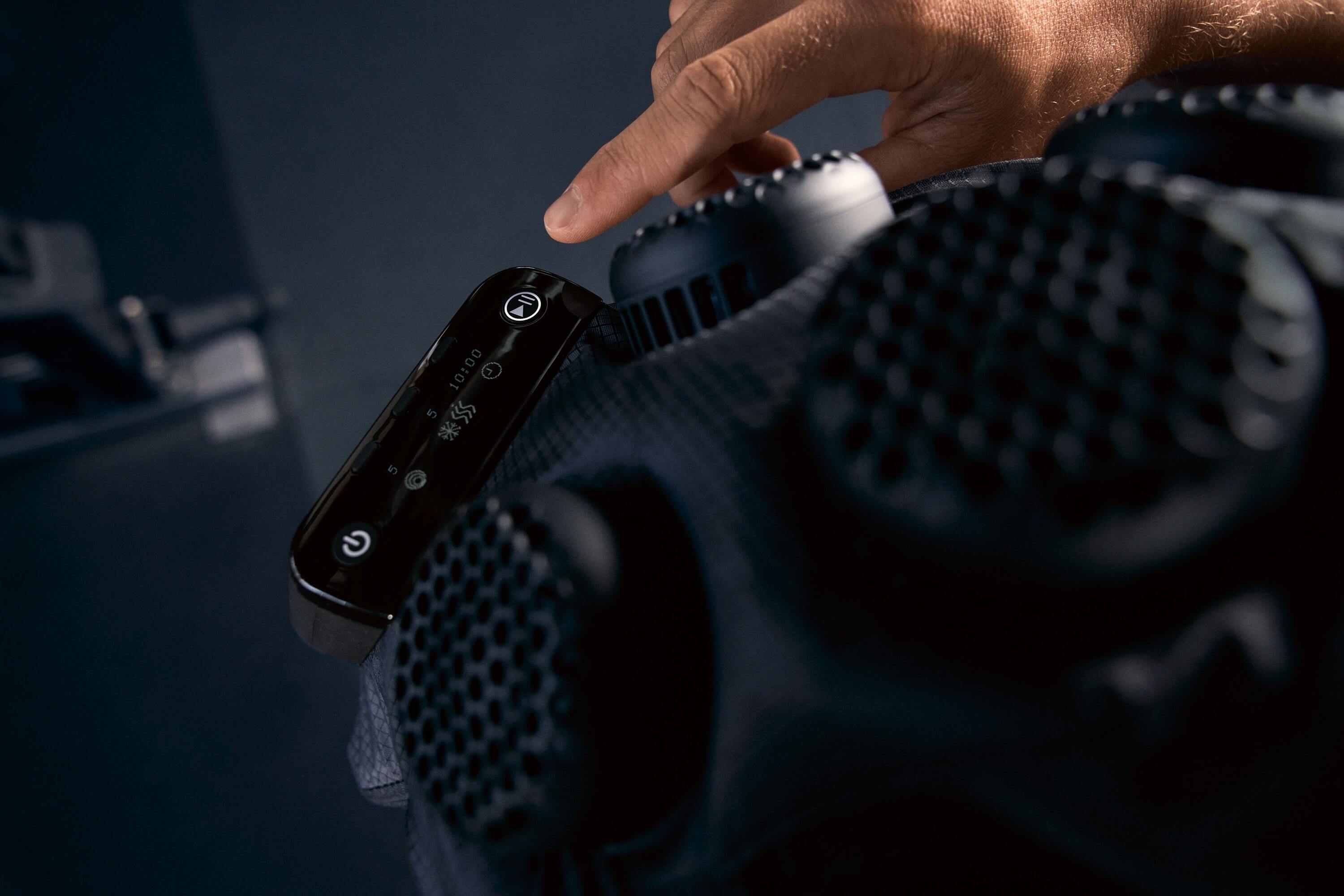 Intuicyjny wyświetlacz OLED ułatwia obsługę, a łączność Bluetooth umożliwia integrację z aplikacją Hyperice.