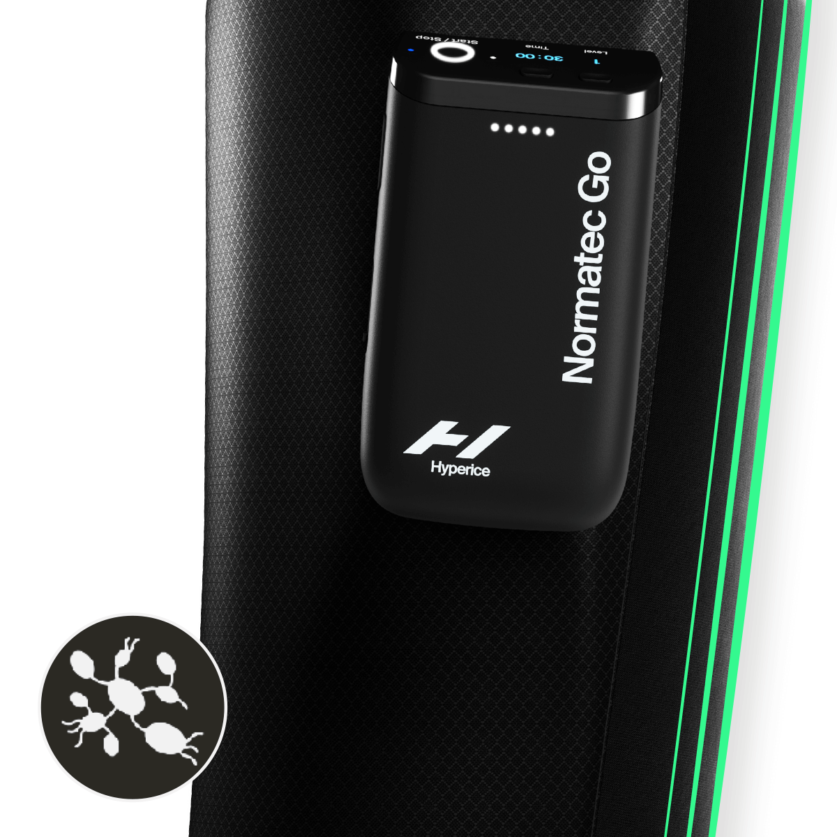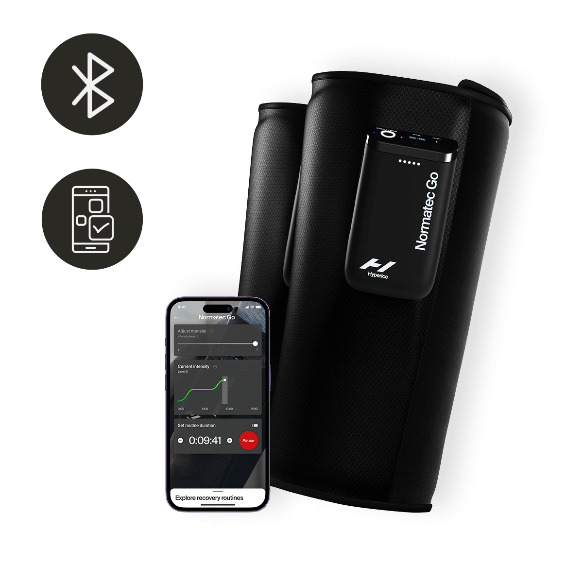 • Normatec GO łączy się przez Bluetooth® z aplikacją Hyperice